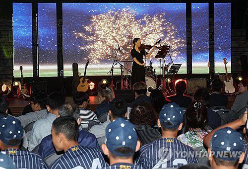 (대구=연합뉴스) 김현태 기자 = 대구 남구 앞산 빨래터에서 17일 오후 협성경복중학교 주최로 지역민들을 위한 음악회 '10월을 노래하다'가 열리고 있다.
