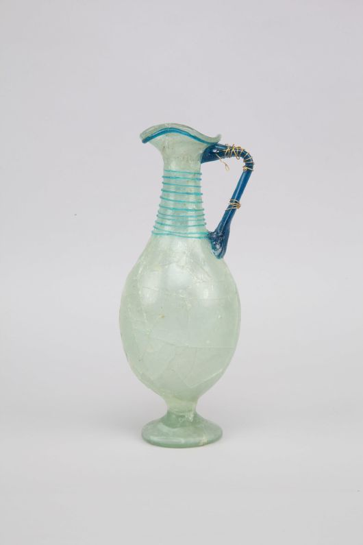 5~6세기 신라 능묘에서는 당시 최고 사치품에 해당하는 외국산 유리그릇이 20개 이상 발견되었다. 삼국 중 신라에서 유독 많이 발견되어 신라 문화와 유라시아 교류의 양상을 이해하는 데 중요한 자료다. 이 유리그릇은 대부분 잔이어서 황남대총 출토 유리병의 사례는 더욱 귀하다. 모습도 우아하여, 몸체는 긴 달걀 모양이며, 주둥이는 물결치는 듯한 곡선으로 이루어져 있다. 목과 주둥이 부분에는 푸른색 띠를 둘러 장식했다. 짙은 푸른색 손잡이에는 금실로 감아 수리한 흔적이 있는데, 당시 유리그릇이 얼마나 귀했는지를 잘 보여 준다.