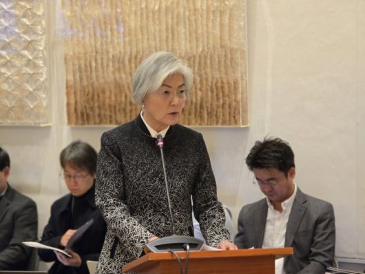 강경화 주미대사가 17일(현지시간) 미국 뉴욕 주유엔대표부에서 열린 국회 외교통일위원회 국정감사에서 업무보고를 하고 있다. 강 주미대사는 "도널드 트럼프 미국 대통령의 경주 APEC(아시아태평양경제협력체) 방한을 계기로 외교 안보, 통상 등 한미 간 협력분야에서 가시적인 성과가 도출될 수 있도록 사전 준비를 철저히 하겠다"라고 밝혔다. 뉴스1 |