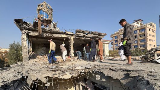 ▲ 아프가니스탄 카불에서 주민들이 수요일에 발생한 두 차례의 드론 공격으로 피해를 입은 집의 잔해를 치우고 있다.