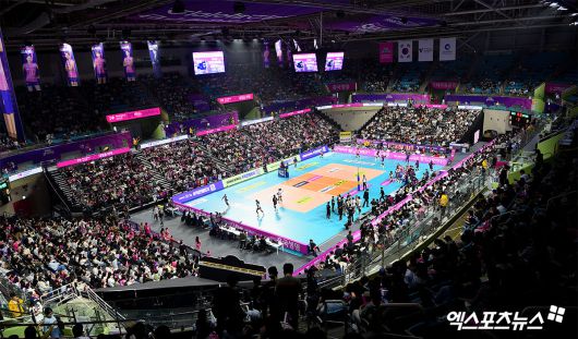 (엑스포츠뉴스 인천, 고아라 기자) 18일 오후 인천삼산월드체육관에서 열린 '진에어 2025-2026 V-리그' 여자부 흥국생명과 정관장의 경기가 진행되고 있다.고아라 기자 iknow@xportsnews.com