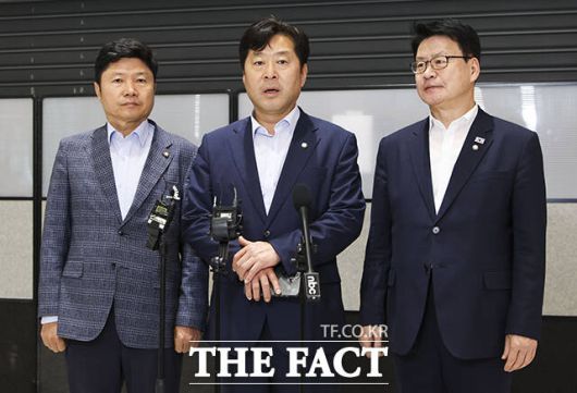 한인 납치·감금 사태 관련 캄보디아 파견을 마친 홍기원과 황명선, 임호선 더불어민주당 의원(왼쪽부터)이 18일 오전 인천국제공항을 통해 입국하며 발언하고 있다. /인천국제공항=장윤석 기자 |