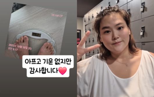 18일 박수지는 자신의 소셜 계정에 "아프고 기운 없지만 감사합니다"라며 체중계 사진을 업로드 했다.