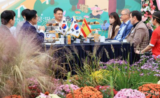 [서울=뉴스핌] 양윤모 기자 = 오승록 노원구청장이 18일 오후 서울 노원구 하계2동 경춘선숲길 일대에서 열‘2025 노원 북페스티벌’ 개막식 전에 얀차렉 주한 체코공화국 대사와 라파엘 부에노 마르티네즈 스페인 문화원장을 초대해 차담회를 갖고 있다.노원 북페스티벌은 ‘몽:땅 야외도서관’이라는 컨셉으로 책과 예술, 그리고 휴식이 어우러진 도심 속 문화축제다. ‘꿈(夢)을 담은 땅(場) 위에서 모두에게 낭만을 보장하겠다’는 의미를 담아 기획됐으며 11월 2일까지 매주 금·토·일 총 9일간 경춘선숲길 일대에서 진행된다. [사진=노원구청] 2025.10.18 yym58@newspim.com