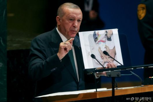 (뉴욕 로이터=뉴스1) 강민경 기자 = 레제프 타이이프 에르도안 튀르키예 대통령이 23일(현지시간) 유엔총회 연설에서 가자지구 상황을 보여주는 사진을 들고 발언하고 있다. 2025.9.23 ⓒ 로이터=뉴스1 Copyright (C) 뉴스1. All rights reserved. 무단 전재 및 재배포, AI학습 이용 금지. /사진=(뉴욕 로이터=뉴스1) 강민경 기자 |