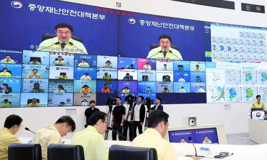윤호중 행정안전부 장관이 16일 오전 세종시 정부세종청사 중앙재난안전상황실에서 열린 국가정보자원관리원 행정정보시스템 화재 관련 중대본 회의를 주재하며 발언하고 있다. 세종=뉴스1