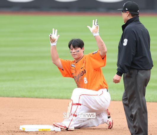 하지만 이 병살타와 삼진은 노시환의 멘탈에 그 어떤 부정적인 영향도 주지 못했다. 한화가 8-6으로 앞선 8회 2사 1루에서 중전안타를 날려 다시 달아날 기회를 채은성에게 넘겨줬다. 채은성이 좌전 적시타로 이 흐름을 이어받았다. 손아섭이 경기 전부터 '리스펙트한다'고 밝힐 만큼 자신감에 가득차 있던 노시환은 포스트시즌 데뷔전을 이렇게 장식했따.
