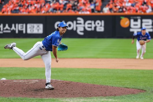 삼성 라이온즈 우완투수 양창섭은 18일 대전 한화생명볼파크에서 열린 2025 신한 SOL Bank KBO 플레이오프(PO·5전3선승제) 1차전 한화 이글스와의 원정경기에 구원 등판했다. 프로 데뷔 후 포스트시즌 첫 출전이었다.