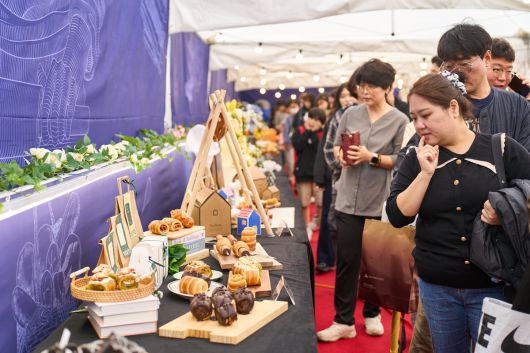51개의 동네빵집이 참여한 빵 마켓에서는 갓 구운 호두과자, 타르트, 소금빵 등을 진열하며 빵집마다 쌀케익, 호두빵, 포도샌드 등 개성이 담긴 대표 빵과 함께 쌀을 원재료로 한 신제품을 선보인다.