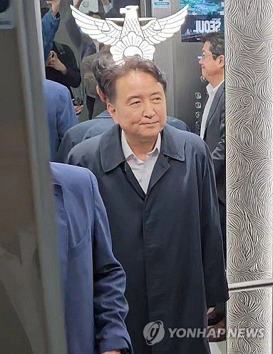 (청주=연합뉴스) 천경환 기자 = 지역 체육계 인사들로부터 돈봉투를 수수한 의혹을 받는 김영환 충북지사가 19일 오전 충북경찰청 반부패경제범죄수사대에 출석하고 있다. 2025.10.19