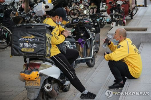 중국의 대표적인 음식배달 플랫폼인 메이투안의 배달 기사들. <연합뉴스>