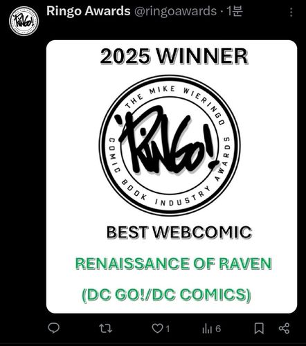 18일(현지시간) 링고상 위원회 사회관계망서비스(SNS)에 따르면 이날 미국 볼티모어 코믹콘에서 진행된 시상식에서 올해 최고의 웹코믹으로 '르네상스 오브 레이븐'이 선정됐다.