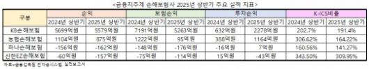 KB손보의 올해 상반기 당기순이익은 5579억원으로 전년 동기 대비 2.1% 소폭 감소했고, 농협손보는 전년 동기 대비 20.7% 줄어든 875억원의 순익을 기록했다. 상대적으로 자산 규모가 작은 하나손보와 신한EZ손보는 각각 162억원, 157억원의 적자를 기록해 전년과 비교해 적자 폭이 확대됐다.