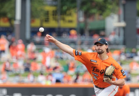 19일 대전한화생명볼파크에서 열린 2025 프로야구 KBO리그 포스트시즌 플레이오프 2차전 삼성 라이온즈와 한화 이글스의 경기. 한화 선발 투수 와이스가 역투하고 있다. [연합] |