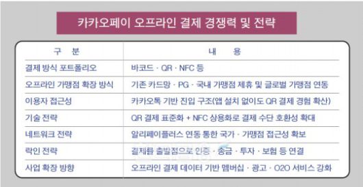국내 온·오프라인 가맹점 중심의 결제 편의성을 강화했고, 이를 기반으로 카카오톡 이용자 4000만명을 잠재 결제 고객으로 흡수했다. 이후 카카오페이는 결제 범위를 국내에서 해외로 확장하는 전략을 택했다. 온라인 결제 비중이 높은 경쟁사들과 달리 '해외 오프라인 결제'라는 실사용 기반 시장을 선점하겠다는 판단이었다.