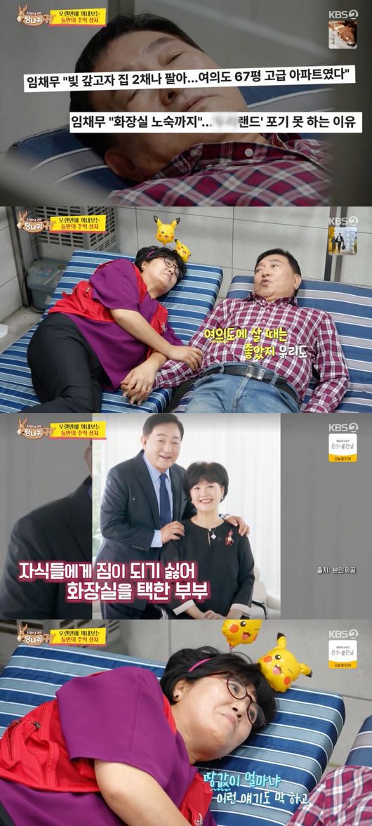 임채무는 VCR에서 아내와 함께 힘든 시절을 회상하기도 했다. 실제 그는 두리랜드의 재개장을 위해 여의도에서 거주하고 있던 67평의 대저택을 처분하기도 한 바. 이로 인해 아내와 화장실에서 노숙하며 생활하기도 해 안타까움을 자아냈던 터다.