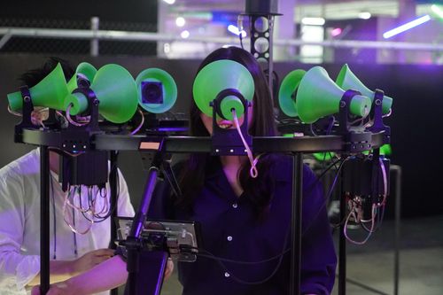 후니다 킴의 '디코딩 되는 랜드스케이프'는 자율주행차의 라이다(LiDAR) 센서를 통해 기계가 공간을 인식하는 과정을 인간의 사유와 감각으로 확장한 작품이다.