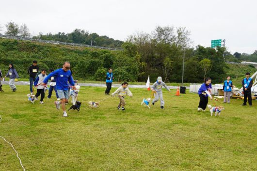 이날 행사에서는 반려견 입양가족 100여 팀이 청·백 두 팀으로 나뉘어 '마루청백전'을 펼쳤다. 이어달리기, 기다려 게임, 신문지 접기 등 운동회 프로그램이 이어졌고, 현장은 웃음과 응원으로 가득했다.