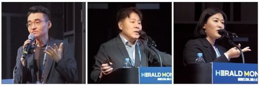 ‘헤럴드머니페스타 2025’에서 염승환(왼쪽부터) LS증권 리테일사업부 이사, 노근창 현대차증권 리서치센터장, 엄경아 신영증권 연구위원이 강연하고 있다.  이상섭·임세준 기자