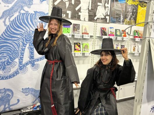 한림출판사 부스에서 ‘케데헌’ 복장을 하고 즐거워하고 있는 관람객들. 출판사 제공 |