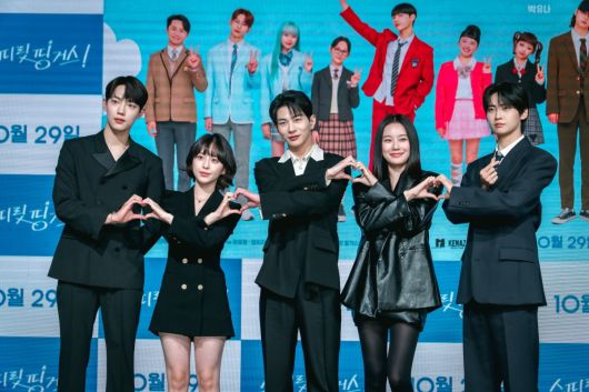 20일 서울 마포구 상암DMC푸르지오 S-city 1층 쇼킹케이팝센터에서 티빙 새 드라마 '스피릿 핑거스'의 제작발표회가 열린 가운데 현장에는 배우 박지후, 조준영, 최보민, 박유나, 이진혁과 연출을 맡은 이철하 감독이 참석했다.