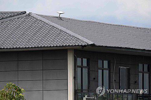 미얀마 온라인사기센터 건물 지붕에 설치된 스타링크 수신기[AFP 연합뉴스 자료사진]