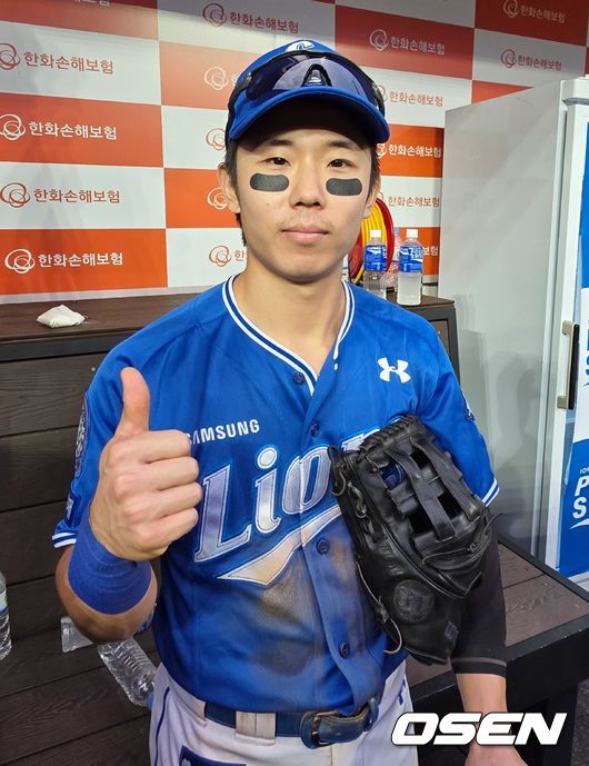 김성윤은 지난 19일 대전 한화생명볼파크에서 열린 한화 이글스와의 플레이오프 2차전에 2번 우익수로 나섰다. 0-1로 뒤진 3회초 무사 1,2루서 한화 선발 라이언 와이스를 상대로 좌전 안타를 때려내며 빅이닝 완성에 이바지했다.