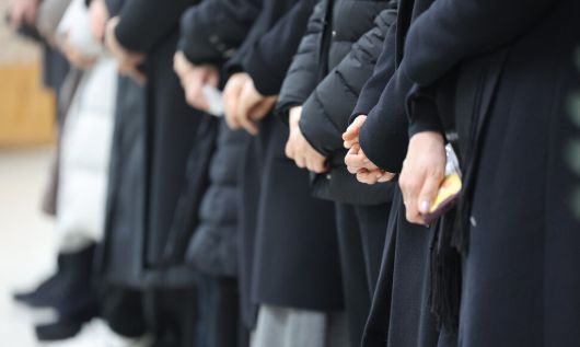 8살 김하늘양이 교사의 흉기에 숨진 다음날인 11일 오후 대전건양대병원 장례식장 빈소 앞 통로에 이 학교 선생님들이 두 손을 꼭 쥐고 서 있다. 하늘양 아버지는 “벌 서는 것처럼 계시지 말고 가셔도 된다”며 선생님들을 위로했지만 이들은 눈물 흘리며 한없이 그 자리에 서 있었다. 아이를 지키지 못한 어른의 죄책감이 이들의 발을 무겁게 누르고 있었다. 김영원 기자 forever@hani.co.kr |