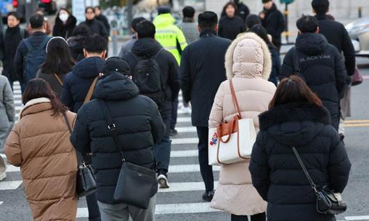 서울 종로구 광화문네거리에서 외투를 입은 시민들이 길을 건너고 있는 모습 (사진=연합뉴스) |