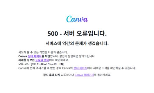 동시에 현재 퍼플렉시티에서 검색을 시도하면 “죄송합니다, 문제가 발생했습니다”는 문구와 함께 결과가 도출되지 않는다. 캔바에서도 이미지를 생성하려 하면 “서버 오류입니다”는 창이 뜬다.