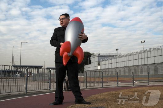 미사일 모형을 들고 포즈를 취한 짝퉁 김정은 하워드 X. 2025.01.20 ⓒ 로이터=뉴스1 ⓒ News1 이지예 객원기자 |