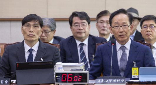 이 과정에서 오 법원장은 신 의원이 '민주당이 이 대통령 재판 중단을 위해 사법부를 압박하고 있다'는 취지로 주장하며 의견을 묻자 "법원의 재판 절차 진행이나 판결 결과에 대해서 비판을 하는 것은 당연히 허용돼야 된다"면서도 "법원 판결에 대한 과도한 비난이나 법관에 대한 인신공격 같은 것은 재판에 영향을 줄 수 있기 때문에 가급적 자제해야 한다"고 지적해 눈길을 끌었다.