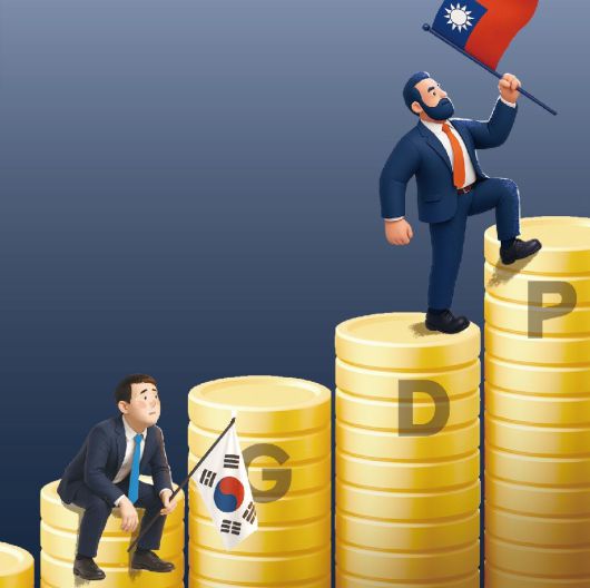 한국과 대만은 1960년대부터 1990년대까지 수출과 산업화를 통해 급격한 경제 성장을 이룩한 ‘아시아의 4마리 용’으로 어깨를 나란히 해 왔다. 하지만 2000년대 들어 한국이 반도체, TV, 휴대전화, 자동차 등에서 세계 1위권으로 뛰어오르기 시작하면서 대만을 앞질렀다. 2002년 당시 한국의 1인당 GDP는 1만3637달러, 대만은 1만3651달러였으나 2003년 한국은 1만5211달러, 대만은 1만4040달러로 역전한 바 있다. 하지만 최근 AI 혁명을 계기로 대만이 TSMC를 위시한 반도체 ‘1등 전략’으로 한국을 앞지르기 시작한 것이다.