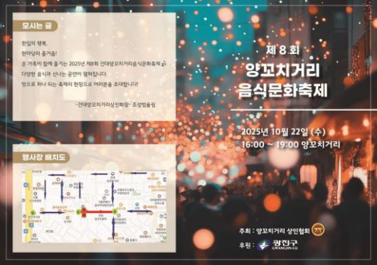 첫 번째 축제는 오는 22일 오후 4시, 이국적인 분위기로 인기를 끄는 ‘건대양꼬치거리’(동일로18길 일대)에서 열린다. 지난해 보행환경 정비로 한층 쾌적해진 거리에서 난타·댄스 공연이 오프닝 무대를 열고, 초대가수 축하공연과 노래자랑, 맥주마시기 대회, 양꼬치 무료시식 등이 이어지며 흥겨운 축제 분위기가 펼쳐질 예정이다.