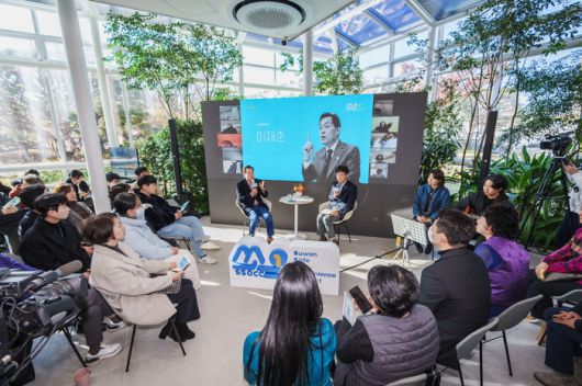 지난해 ‘제1회 수원시 1인 가구 쏘옥 페스타’에서 시민들과 대화하는 이재준 시장(무대 왼쪽). <사진=수원시 제공> |