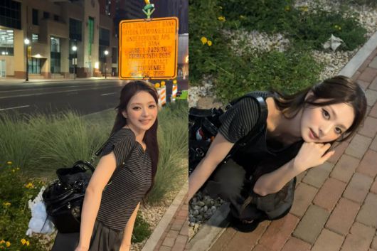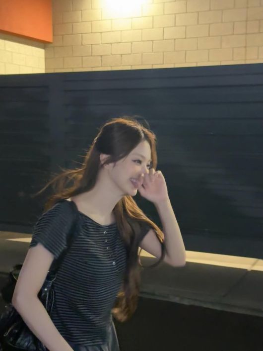 공개된 사진 속 이나경은 도심의 가로등 불빛 아래에서 스트라이프 티셔츠와 블랙 스커트를 매치한 심플한 룩으로 캐주얼한 무드를 선보였다.