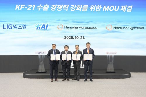 (서울=연합뉴스) 홍규빈 기자 = 국내 주요 방산업체들이 한국형 전투기(KF-21) 수출 경쟁력 강화를 위해 손을 맞잡았다.