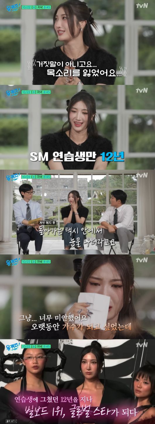 그는 "(계약 해지 후) 돌아가는 택시 안에서 눈물이 났다. 열심히 해도 안 되는구나 싶었다"며 "그냥 너무 미안했다. 너무 오랫동안 가수가 되고 싶었는데 그 꿈을 못 이루는 내 자신이 너무 싫었다"며 눈물을 흘렸다. 이어 "한 달 동안 울고 자다가 일어나고 아이돌이나 K-팝에 대한 원망이 많았다. 상처를 많이 받았으니까"라고 고백했다.