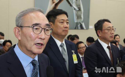 [서울=뉴시스] 고승민 기자 = 김영섭 KT 대표, 홍범식 LGU+ 대표, 유영상 SKT 대표가 21일 서울 여의도 국회에서 열린 과학기술정보방송통신위원회의 정보통신산업진흥원 등 국정감사에서 박충권 국민의힘 의원 질의에 답하고 있다. 2025.10.21. kkssmm99@newsis.com |