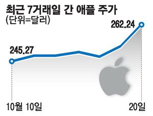 그러나 지난달 19일 아이폰17을 내놓으면서 분위기가 달라졌다. 지난달 22일에는 주가가 하루 새 4.32% 급등하기도 했다. 최근 7거래일 가운데 5거래일이 강세를 보이며 '아이폰 효과'를 누렸다.