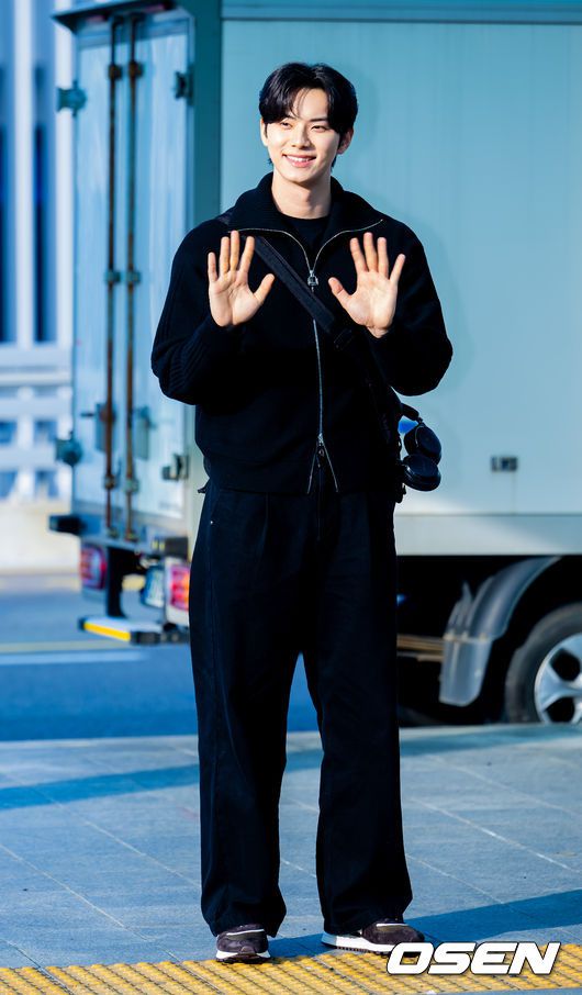 배우 이채민이 출국길에 포즈를 취하고 있다. 2025.10.21 / rumi@osen.co.kr