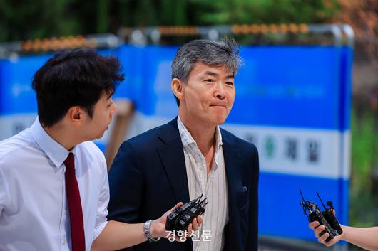 이종호 전 블랙펄인베스트 대표가 지난 7월30일 서울 종로구 KT 광화문빌딩 웨스트에 마련된 민중기 특별검사 사무실로 출석하고 있다. 이준헌 기자 |