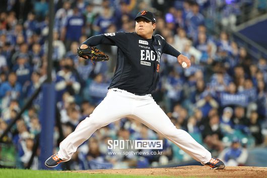 [스포티비뉴스=대전, 곽혜미 기자] 2025 신한 SOL뱅크 KBO 포스트시즌 삼성과 한화의 플레이오프 3차전이 21일 오후 대구 삼성라이온즈파크에서 열렸다. 한화 선발 류현진이 역투하고 있다. <저작권자 ⓒ SPOTV NEWS. 무단전재 및 재배포 금지>
