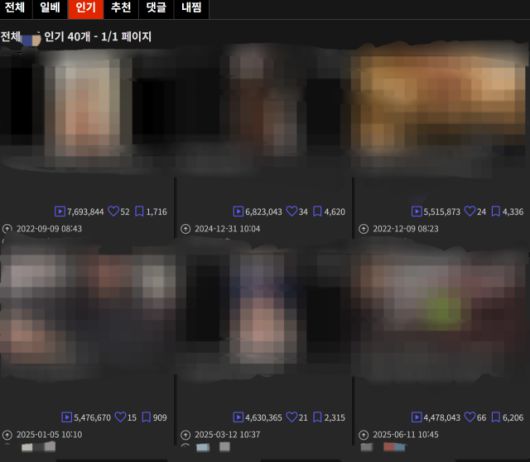 사이트 운영 기간 동안 가장 많이 소비된 음란물들을 나열한 '인기' 카테고리 대다수도 불법촬영물이 가장 많았다. 사이트에 게시된 불법촬영물들의 조회수는 적게는 수십만에서 많게는 수백만에 이른다. 인기 게시물 중에서는 300만 넘는 한국 불법촬영물이 수두룩하며, 여러 불법촬영물을 합쳐 게시한 '모음집'의 경우 3년 전 게시돼 현재 조회수 760만 회를 넘길 정도로 많은 사람들이 시청했다.