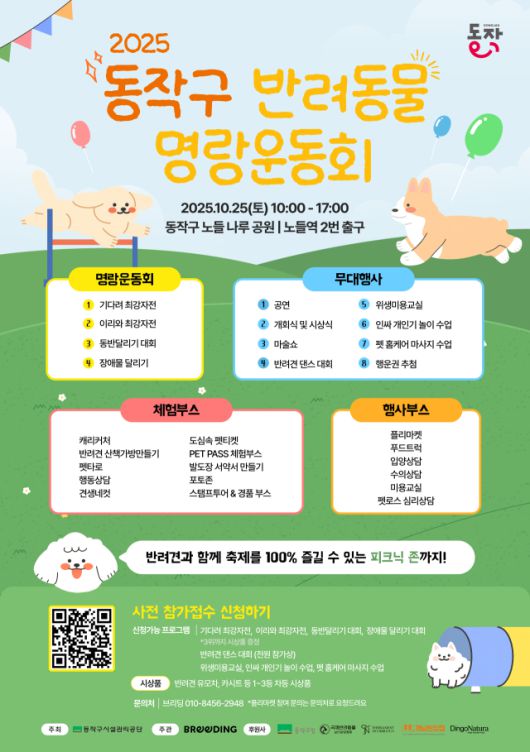 서울 동작구가 오는 25일 노들나루공원에서 ‘2025 반려동물 명랑운동회’를 개최한다. 올해로 3회째를 맞는 이번 행사는 반려동물에 대한 인식을 개선하고, 반려인과 비반려인 간의 소통과 화합을 도모하기 위해 기획됐다. 축제는 오전 10시부터 오후 5시까지 진행되며, 반려인과 지역 주민 누구나 즐길 수 있는 다채로운 프로그램이 운영된다.