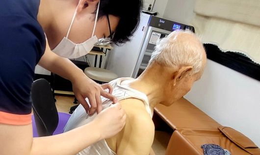 가정집 안방을 닮은 ‘건강증진실’에서 공중보건의가 말했다. 전종만(89) 할아버지가 오른쪽 어깨 통증을 호소하며 팔을 들어 올렸다. 팔이 귀에 붙지 않았다.
