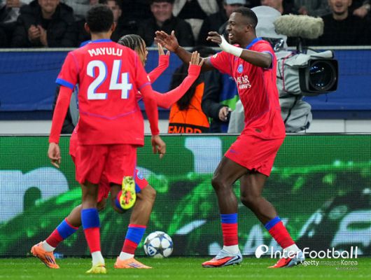 PSG가 교체 카드를 꺼냈다. 후반 18분 이강인과 뎀벨레가 마율류와 크바라츠헬리아를 대신해 투입됐다. PSG의 용병술이 적중했다. 후반 21분 뎀벨레가 문전에서 바르콜라의 패스를 가볍게 밀어 넣었다.