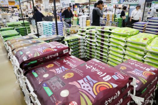 쌀값이 급등하고 있는 12일 서울의 한 대형마트를 찾은 시민들이 쌀을 살펴보고 있다. /사진=뉴스1 |