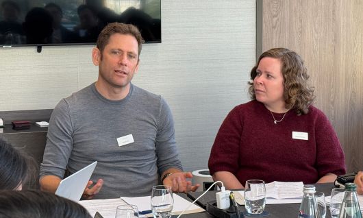 16일(현지시간) 프랑스 니스에서 프레드릭 린드 볼보차 ES90 커머셜 총괄(왼쪽)과 이사벨 스톡맨 볼보차 세이프티 센터 선임연구원이 한국 취재진과 인터뷰를 하고 있다. 볼보차 제공 |