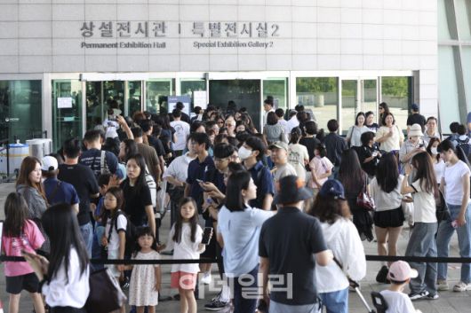 서울 용산구 국립중앙박물관 전시실 앞 광장이 입장을 대기하는 시민들로 북적이고 있다. (사진=이영훈 기자) |